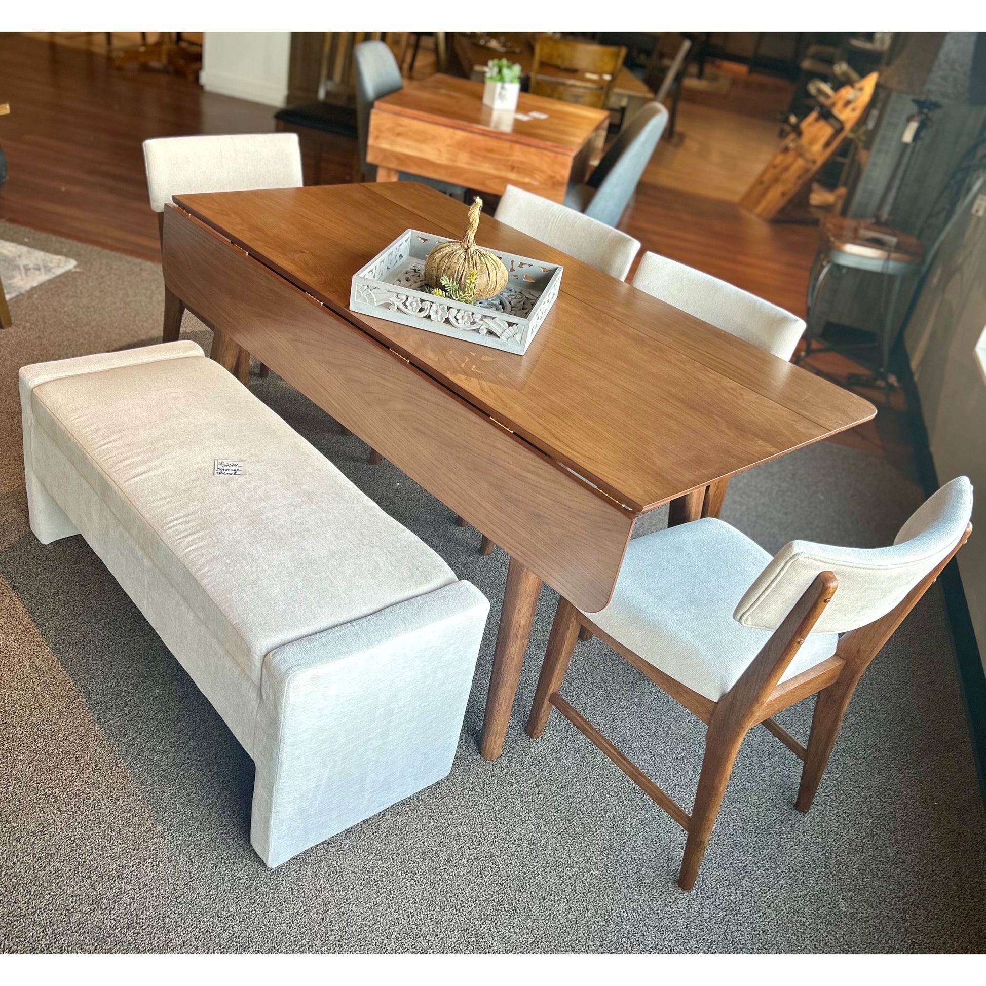 This unique table features 2 drop leaves to adjust the size to your needs. It is 66” long and can be adjusted to 24”, 33” or 42” wide.